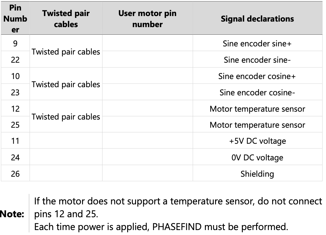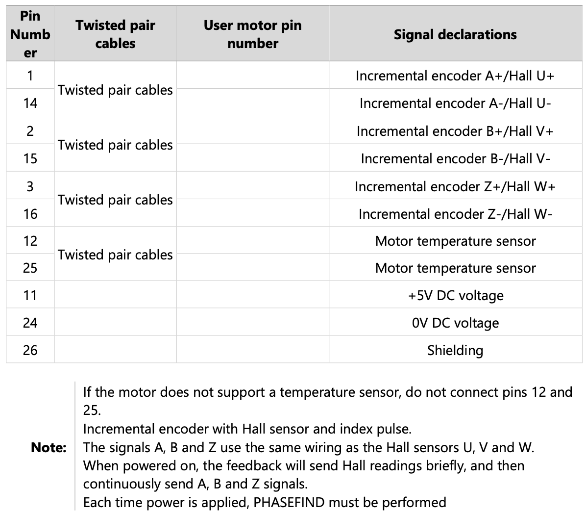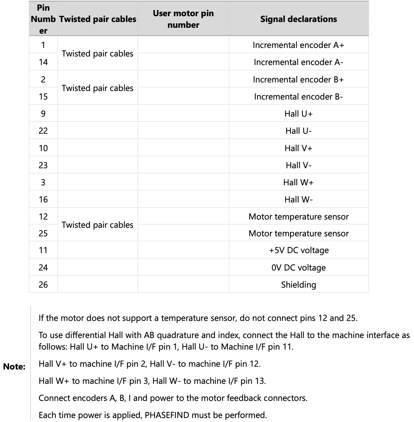 When the CDHD2S drive system contains an electronic motor nameplate, the specific feedback parameters will be directly transmitted to the drive after power-on, and it is impossible to operate. When a motor is selected from the ServoStudio2 motor library, the motor feedback parameters are preset and written to the drive. These parameters are defined by the manufacturer and cannot be modified by the user; if you want to modify these parameters, please contact technical support. FEEDBACKTYPE defines the motor feedback type used in the drive application.