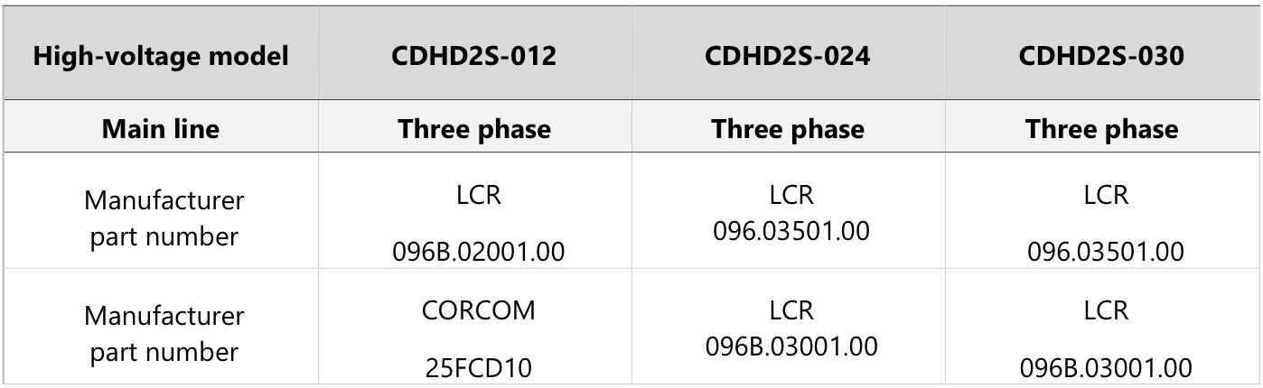 The recommended line filter manufacturers and part numbers of CDHD2S are listed in the following table.